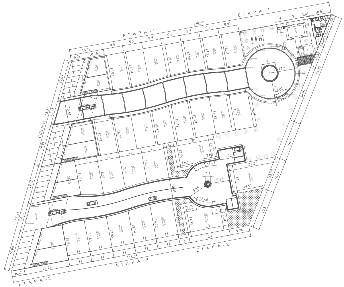 El área esta dividida en 15 lotes que van desde los 164 m2 hasta los 207 m2 en una superficie de 6,021.46 m2. con Amenidades, Áreas verdes y Casa Club.